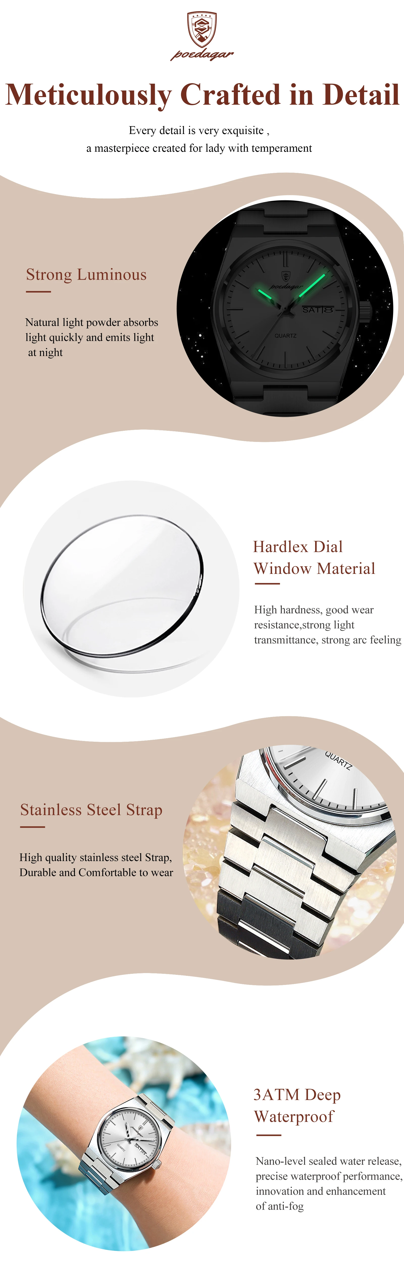⌚ Relógio Poedagar Feminino | Aço Inoxidável e Elegância